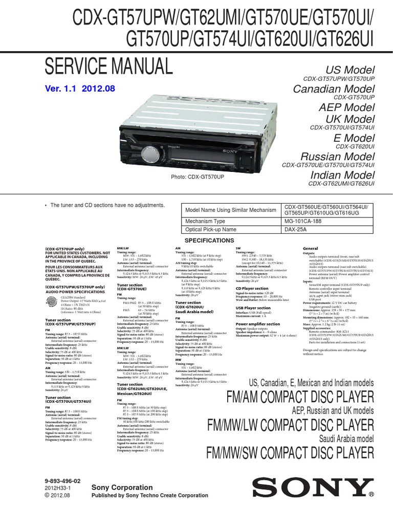 Sony Cdx Gt57upw Cdx Gt62umi Cdx Gt570ue Uv Up Cdx Gt574ui Cdx 620ui Cdx Gt626ui Ver1 1 Electrical Connector Decibel