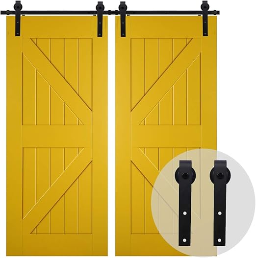 Hahaemall 5ft 1 5m Doppeltur Innen Rustikal Schiebetur Kit Scheunentor Hardware Track Holz Schrank Schwarz Metall Rolling Schienen Set System Schwarz Amazon De Baumarkt