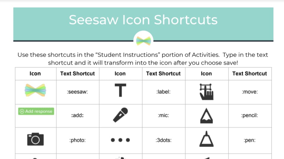 Seesaw On Twitter Set Your Students Up For Success With Icon Shortcuts Use These Shortcuts In The Student Instructions Portion Of Activities Type In The Shortcut And It Will Transform Into The
